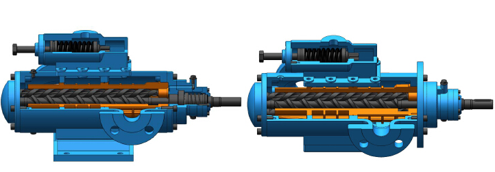 如果輸送輕油、柴油建議選用SM螺桿泵或3Gr三螺桿泵,由于輕油或柴油的粘度較低,在要求泵的輸送壓力超過2.5MPa時(shí),選用SM螺桿泵或增壓型齒輪泵,否則3Gr三螺桿泵的工作壓力超過2.5MPa是內(nèi)泄量會增大,造成壓力上不去。